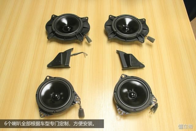 而本次推出的飛歌&阿爾派的專用喇叭無疑是重頭戲。喇叭一共有六個,兩個高音,四個低音。全部的喇叭為了配合飛歌GS1的效果,根據不同的車型專門開模定製,實現了專車專用和原車連接插頭對插,高音直接換掉三角位模具即可,安裝非常簡單。