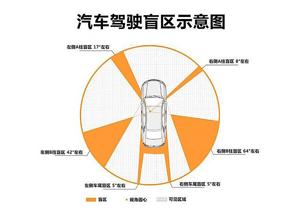 前區左右A柱盲區,左右B柱包括後方左右C柱等車主無法準確判別駕乘是否安全。