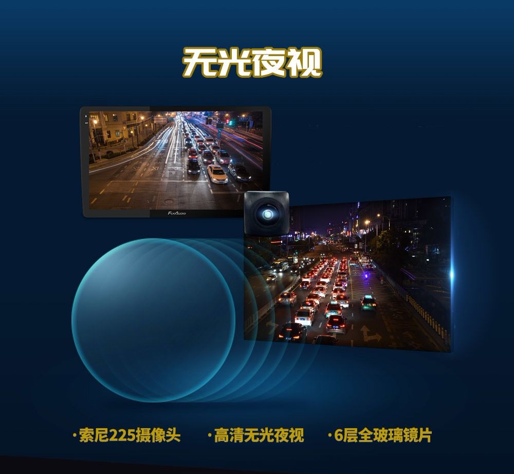 夜視難題一直以來不止是車主頭疼的問題,同時也是品牌商努力的目標。飛歌360°全景(3D版)配置索尼225高清無光夜視攝像頭,清晰靈動,色彩逼真,噪點少,夜間拍攝效果彷如白晝;6層全玻璃鏡片,提高透光率,高感光智能采光技術夜間拍攝效果更清晰!