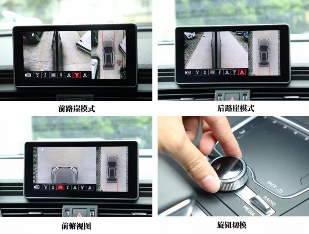 在打開360°全景界麵後,右邊畫麵顯示車輛俯視圖,直觀清晰的看出車輛四周的情況。左邊畫麵可以通過MMI觸控板上的旋鈕切換多達10zhongbutongdehuamian,meigehuamianchengxiangqingxi,xijiebaoliuzhenshi,keyongdufeichanggao。qizhongluyamoshishihefeichangxiazhaidedaolushiyong,buyongzaibatoushenchuchuangwaizuokanyoukanle。