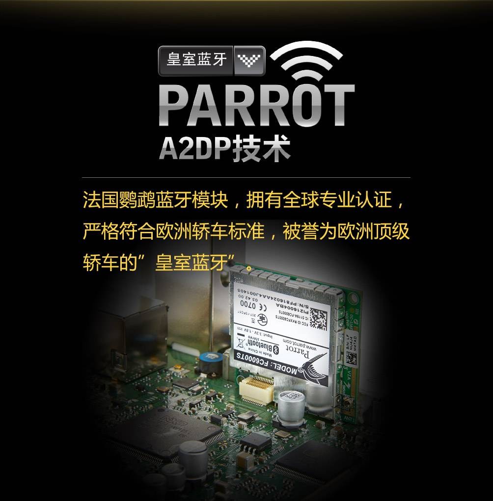 采用全球頂級法國鸚鵡藍牙,嚴格符合歐洲轎車標準,被稱之為歐洲轎車的“皇室藍牙”。