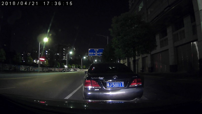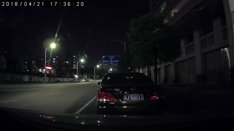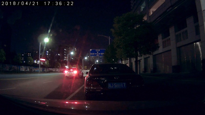 夜晚實拍光線對比,右側路燈關閉,以及汽車燈一次關閉後,依然可以看清前方車牌!