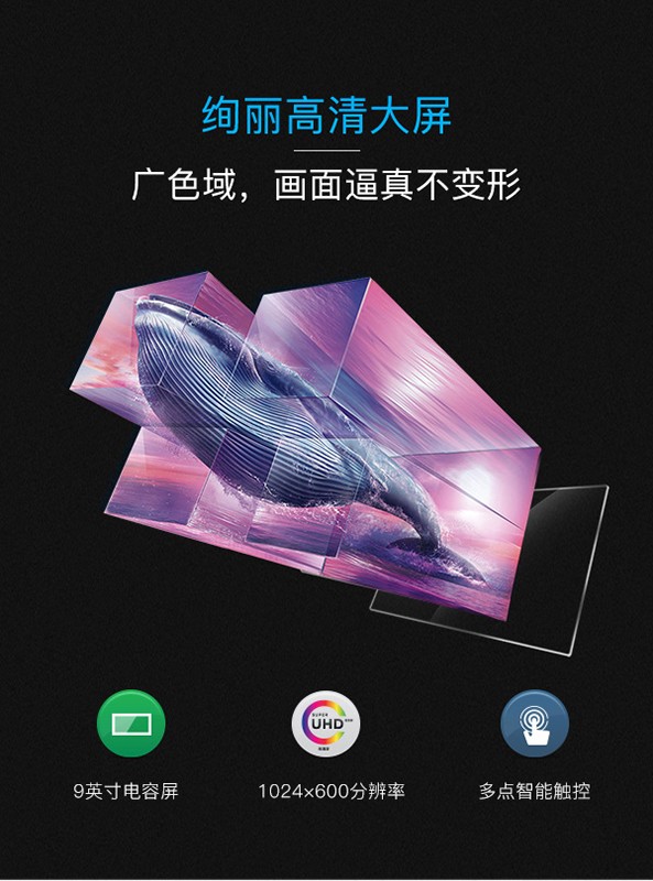 全新9寸大屏,1024×600分辨率,多點觸控電容屏