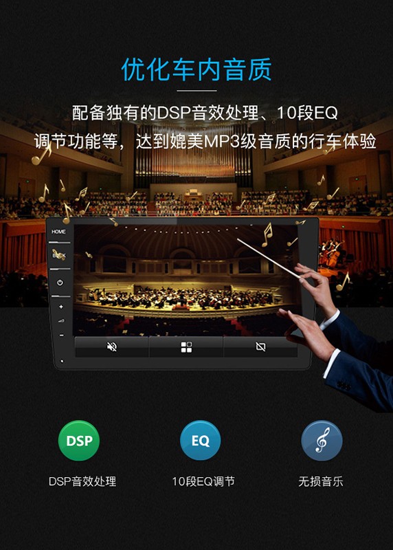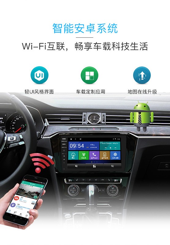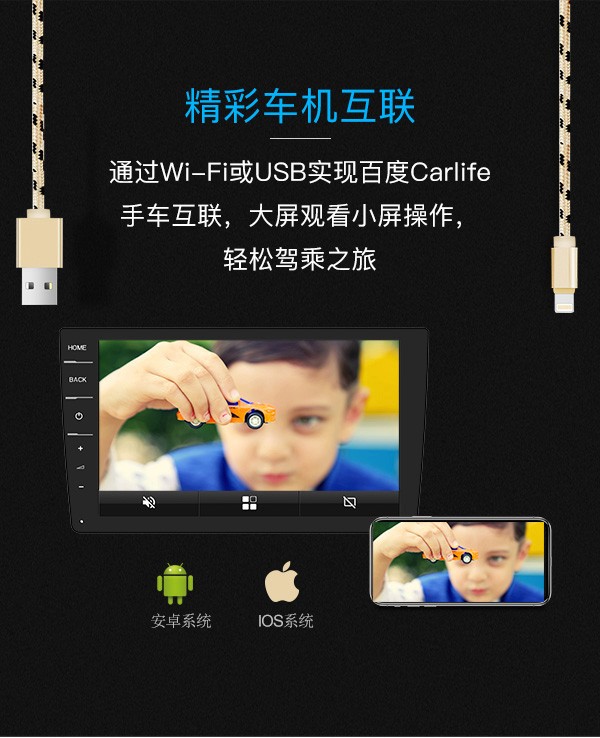 深度定製智能安卓車機係統,扁平化UI設計,清晰易懂,操作方便