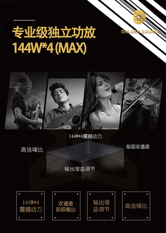 144W*4(MAX)/ 72W*4(額定)媲美獨立專業功放,增益音源表現力,帶來更優質音樂享受。雙通道低音前級輸出,連接外置低音炮,低音炮正反相位,暢享混響、和聲、鑲邊等澎湃律動,叫醒深埋的野性能量。