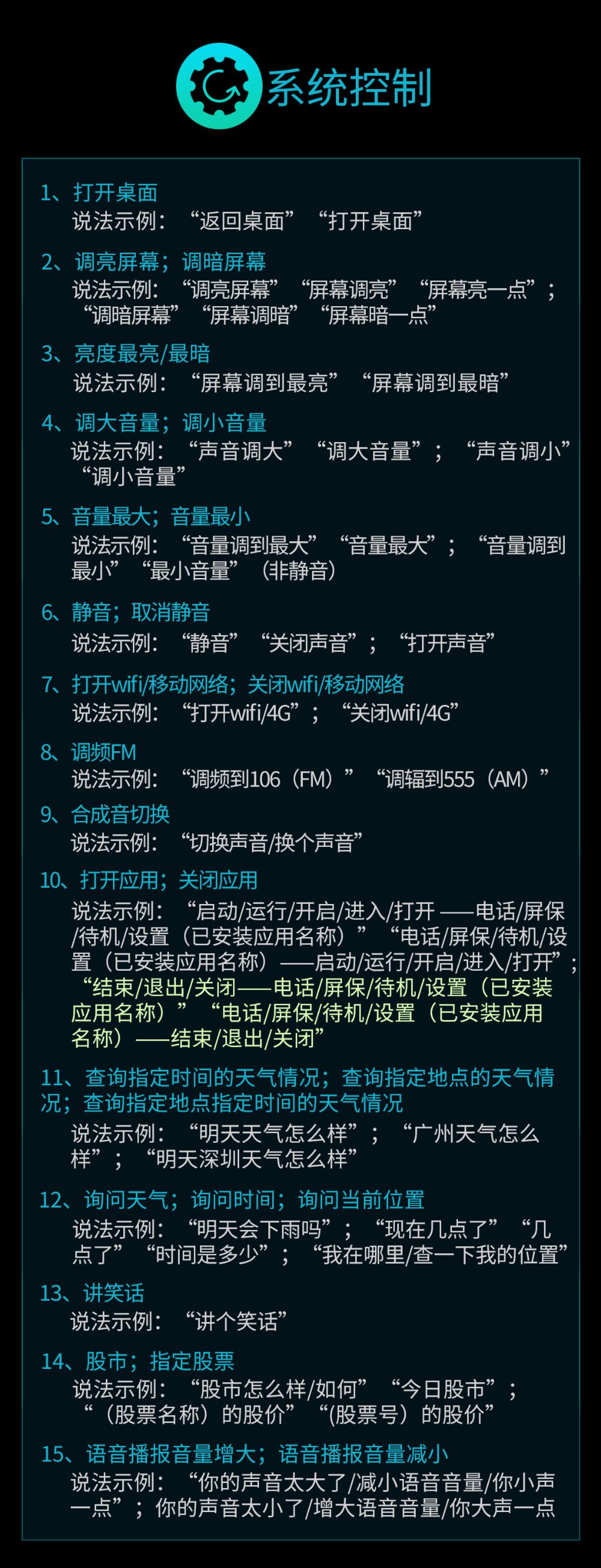 三、快捷指令(無需喚醒)