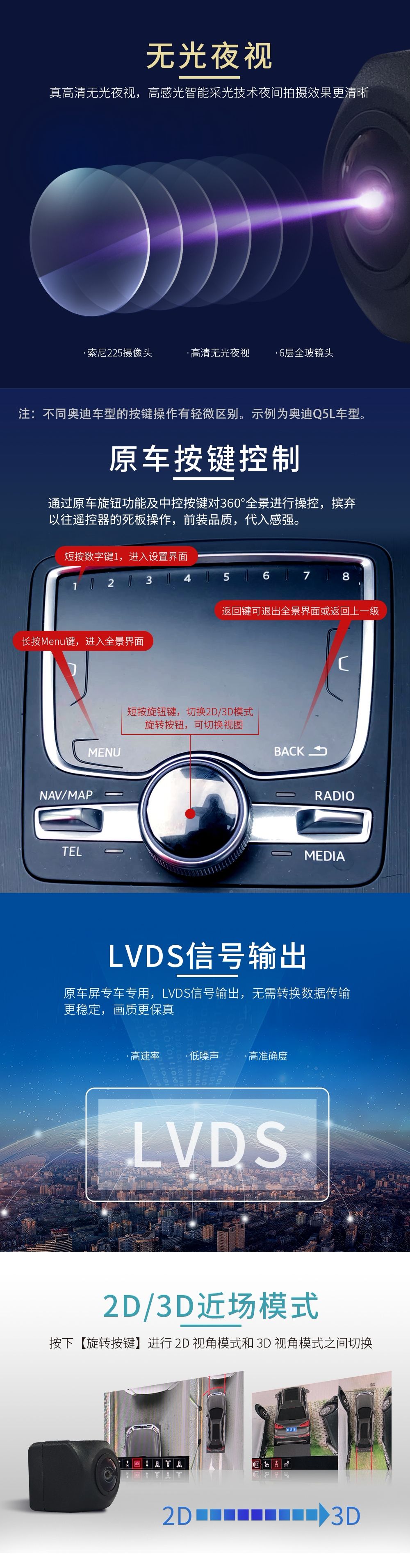 飛歌公司專研奧迪係列360°全景3D版行車輔助係統,彰顯奧迪品牌高端品質,旨在給車主帶來輕奢享受!