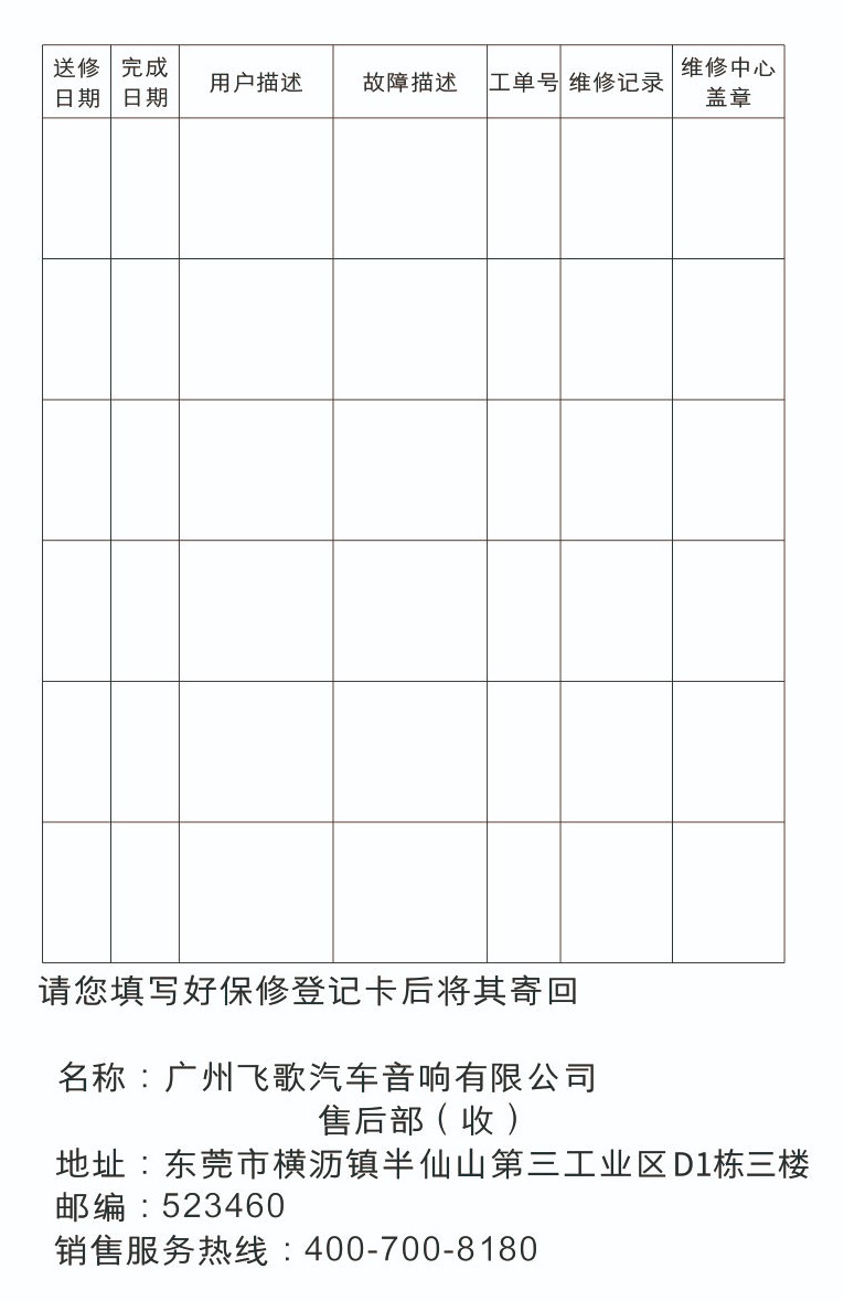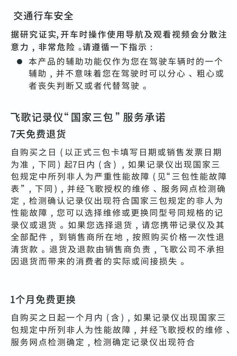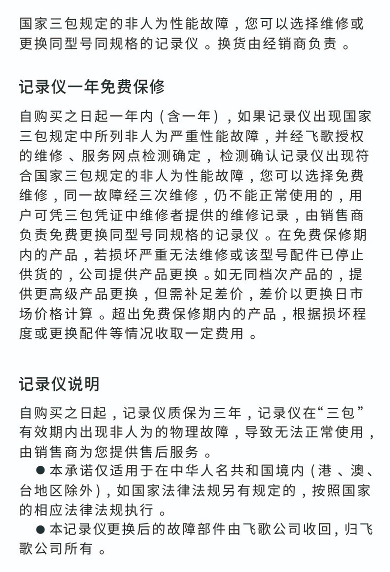 Flyaudio AR行車記錄儀三包說明