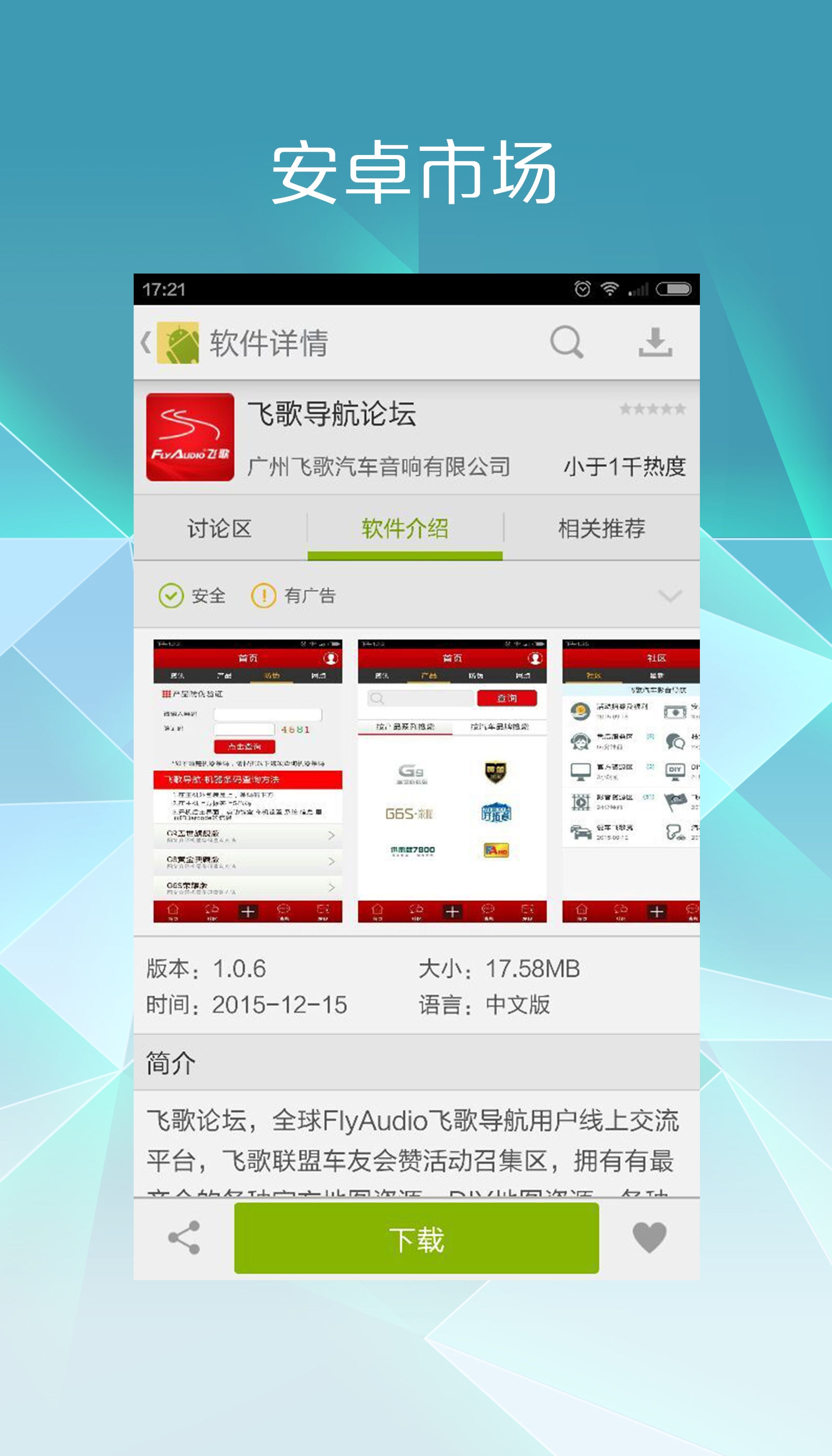 同時,豌豆莢等熱門安卓市場軟件,也可下載飛歌導航論壇App。