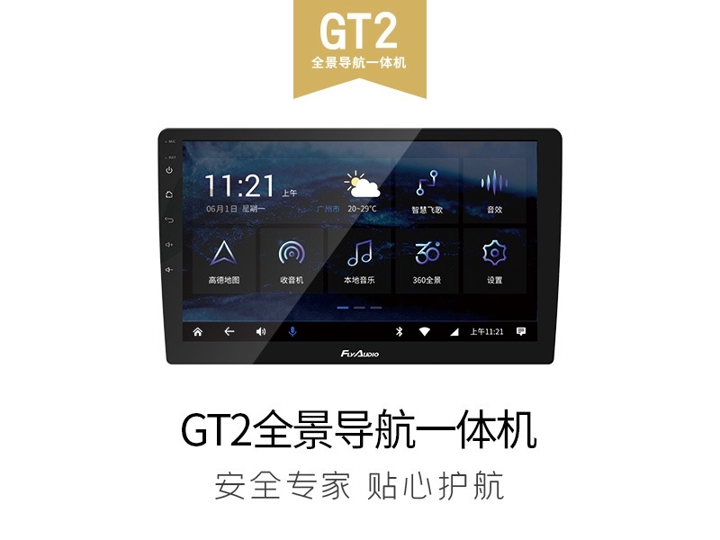 飛歌GT2全景導航一體機“智能車機 360°全景 豐富行車功能 優質音效”集成化GT2全景導航一體機,配置更強大CPU,內置原生級360解碼係統,無需加裝360°全景外設,一步實現車機 全景功能!去年的GT1,今年的GT2,升級的品質,升級的功能!