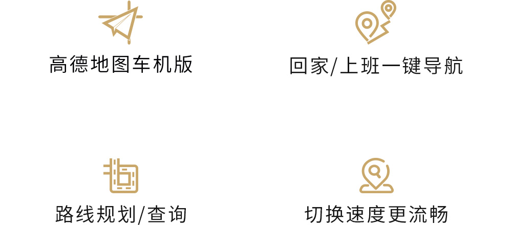 全新桌麵級信息入口,帶來豐富的內容組織形態,主屏彙集整合車載三大常用功能——路線導航、收音機、音樂播放等。