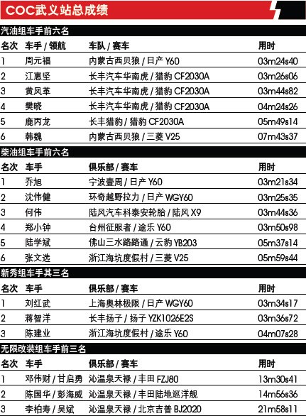 | 武義站的比賽過程比前幾站更加跌宕起伏。汽油組中,長豐汽車華南虎車隊的黃鳳革、江jiang惠hui堅jian包bao攬lan預yu賽sai前qian兩liang名ming,隊dui友you樊fan曉xiao排pai在zai第di四si,按an照zhao以yi往wang經jing驗yan,決jue賽sai的de冠guan軍jun又you沒mei的de跑pao,肯ken定ding是shi華hua南nan虎hu的de囊nang中zhong物wu,然ran而er,另ling外wai進jin入ru決jue賽sai的de內nei蒙meng古gu西xi貝bei狼lang車che隊dui的de周zhou元yuan福fu卻que扮ban演yan了le打da虎hu角jiao色se,他ta以yi不bu足zu兩liang秒miao的de優you勢shi力li壓ya江jiang惠hui堅jian,奪duo走zou冠guan軍jun。賽sai後hou,周zhou元yuan福fu說shuo:“我對自己的總體表現不算太滿意,感覺自己跑得不夠狠,有些猶豫,本來可以更快一點的,像決賽第一圈,我覺得應該還能快5 秒(miao)左(zuo)右(you)。而(er)第(di)二(er)圈(quan),我(wo)又(you)在(zai)炮(pao)彈(dan)坑(keng)那(na)兒(er)死(si)火(huo),耽(dan)誤(wu)了(le)點(dian)時(shi)間(jian)。汽(qi)油(you)組(zu)的(de)競(jing)爭(zheng)太(tai)激(ji)烈(lie)了(le),你(ni)必(bi)須(xu)發(fa)揮(hui)到(dao)最(zui)好(hao)最(zui)完(wan)美(mei)的(de)水(shui)平(ping)才(cai)行(xing)。我(wo)覺(jiao)得(de)自(zi)己(ji)今(jin)天(tian)非(fei)常(chang)幸(xing) 運,而且浙江是我的幸運地。算上這次,我在浙江4 次比賽4 次都拿了冠軍。”屈居亞軍的江惠堅則說“wodiyiquanpaodehaikeyi,dandierquanchuxianleshiwu,erqieshihenyaomingde,zaiguoshuikengshiwobenlaiyiweizijibayushuaqidakaile,danjieguogenbenmeidakai,dengchulekeng,dangfengboliyipianmohu,shenmedoukanbudao,genbenbunengkaikuai,langfeileyidianshijian。zheyizhankeyishuoshiyinweizijideshiwudiudiaoguanjun,erqiechajuhaibuda,henyihan,yinweiruguonalezhezhanguanjun,namejinniandezongguanjunjiugengyoubawole。wohuihaohaozongjiebisai,xiwangzaihoumiandeshamenzhanhechenzhouzhanbisaizhongbiaoxiangenghaoyixie。”預賽第一、決賽獲得第三的黃鳳革有點鬱悶:“如果要形容我這一站的比賽,隻能用非常糟糕來形容。第一圈後胎就漏氣了,第二圈,昨天剛換的雨 刷(shua)器(qi)又(you)壞(huai)了(le),運(yun)氣(qi)簡(jian)直(zhi)太(tai)糟(zao)了(le)。我(wo)個(ge)人(ren)沒(mei)覺(jiao)得(de)武(wu)義(yi)站(zhan)的(de)賽(sai)道(dao)難(nan)度(du)多(duo)麼(me)可(ke)怕(pa),重(zhong)要(yao)的(de)還(hai)是(shi)藝(yi)高(gao)人(ren)膽(dan)大(da),當(dang)然(ran)還(hai)得(de)有(you)點(dian)運(yun)氣(qi)。真(zhen)是(shi)挺(ting)鬱(yu)悶(men)的(de)。” | ||||