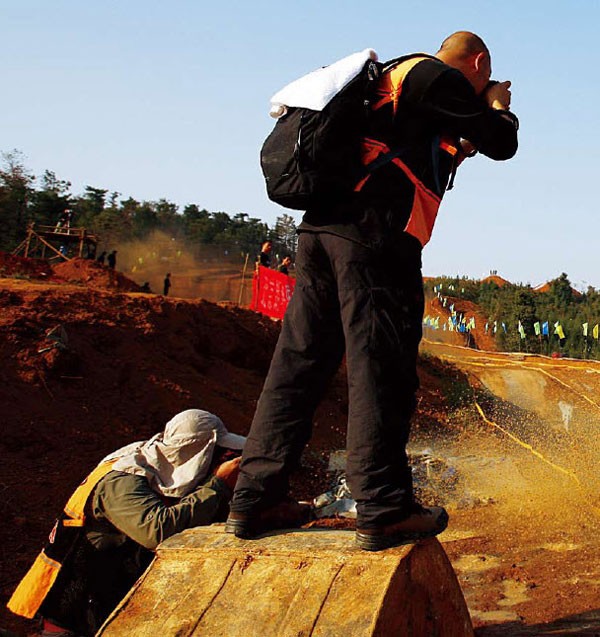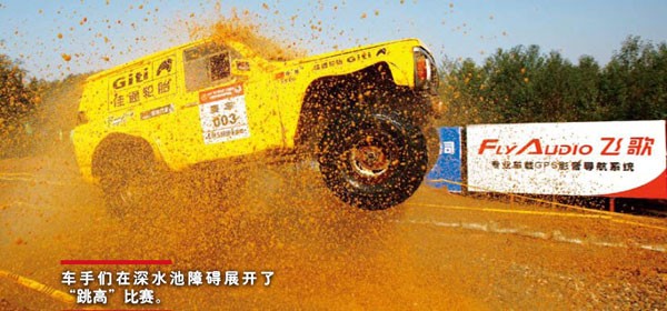 | 深水池障礙是最有看點的,車手們在這裏展開了 一場“跳高”比賽。 |
