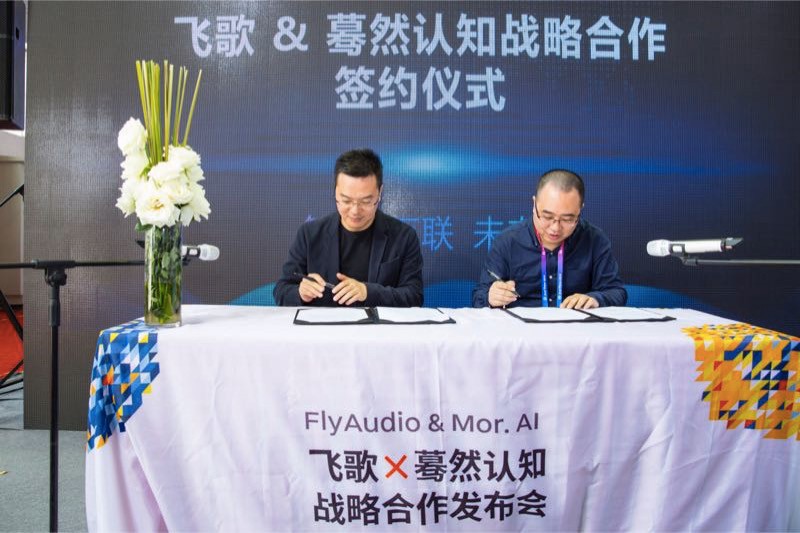 4月27rishangwu,feigeyumoranrenzhixuanbudachengzhanlvehezuo,bingzaibeijingchezhanxianchangjuxinglefabuhui。shuangfangbiaoshijinhoujiangzaizhinengchezailingyuzhankaishenruhezuo,feigejiangyumoranrenzhilianhekaifadazaiMorAuto係統的FlyAudio-Mor AI車機,為前裝OE客戶提供更加穩定可靠的AI車機方案,為客戶提供更加智能快捷的用戶體驗。