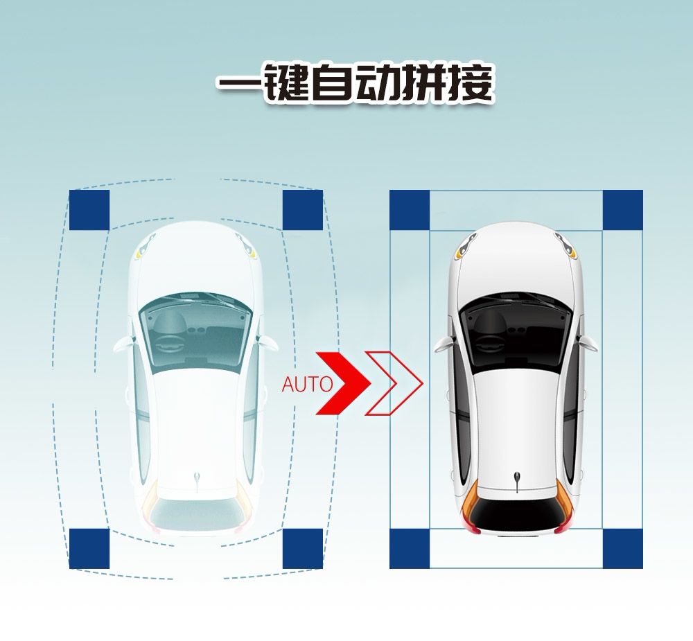省卻手動拚接的繁瑣,飛歌360°全景(3D版)采用一鍵自動無縫拚接方式。支持一鍵自動校準,便捷調試,新手都可以操作的標定方式,無憂暢享安全旅途。