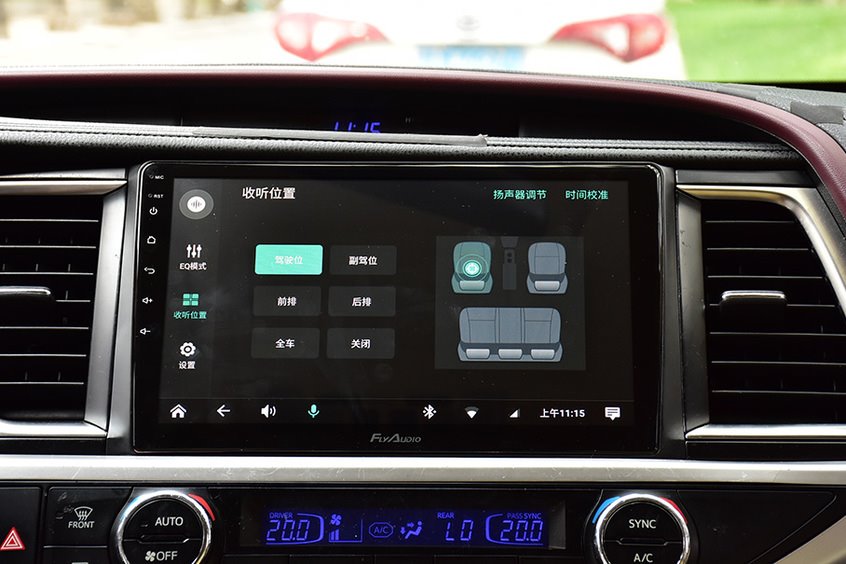 除了EQ模式,還有收聽位置設置,也就是音響調校經常說的“皇帝位”,可以具體到駕駛位、副駕駛、前排、後排的位置,還可以設置聲音到達不同位置的相應時間。所以說這套產品對於音響發燒友來說,可玩性很大。