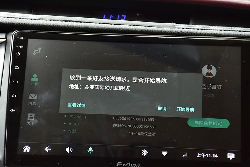 而有了飛歌X2這(zhe)個(ge)好(hao)友(you)接(jie)送(song)功(gong)能(neng),駕(jia)駛(shi)員(yuan)隻(zhi)需(xu)要(yao)將(jiang)接(jie)送(song)指(zhi)令(ling)發(fa)給(gei)微(wei)信(xin)好(hao)友(you),好(hao)友(you)接(jie)受(shou)後(hou),係(xi)統(tong)就(jiu)會(hui)自(zi)動(dong)將(jiang)位(wei)置(zhi)信(xin)息(xi)反(fan)饋(kui)給(gei)駕(jia)駛(shi)員(yuan),這(zhe)樣(yang)就(jiu)不(bu)會(hui)存(cun)在(zai)定(ding)位(wei)不(bu)準(zhun)確(que)或(huo)者(zhe)位(wei)置(zhi)選(xuan)擇(ze)的(de)問(wen)題(ti)了(le)。此(ci)功(gong)能(neng)尤(you)其(qi)適(shi)合(he)用(yong)戶(hu)接(jie)送(song)女(nv)朋(peng)友(you)或(huo)者(zhe)老(lao)婆(po)大(da)人(ren)。