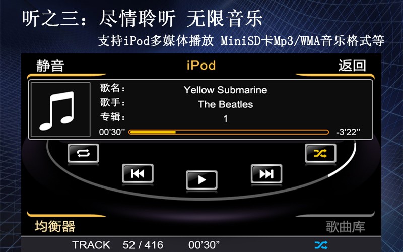 支持iPod、MiniSD卡等多媒體播放,盡情聆聽無限音樂。