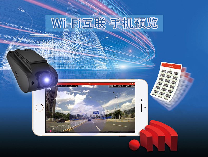 通過Wi-Fi實現多屏互動,打開手機APP連接記錄儀Wi-Fi即可輕鬆查看實時錄製畫麵或回放曆史記錄,也可將視頻下載到手機本地,並且支持手機實時拍照功能。