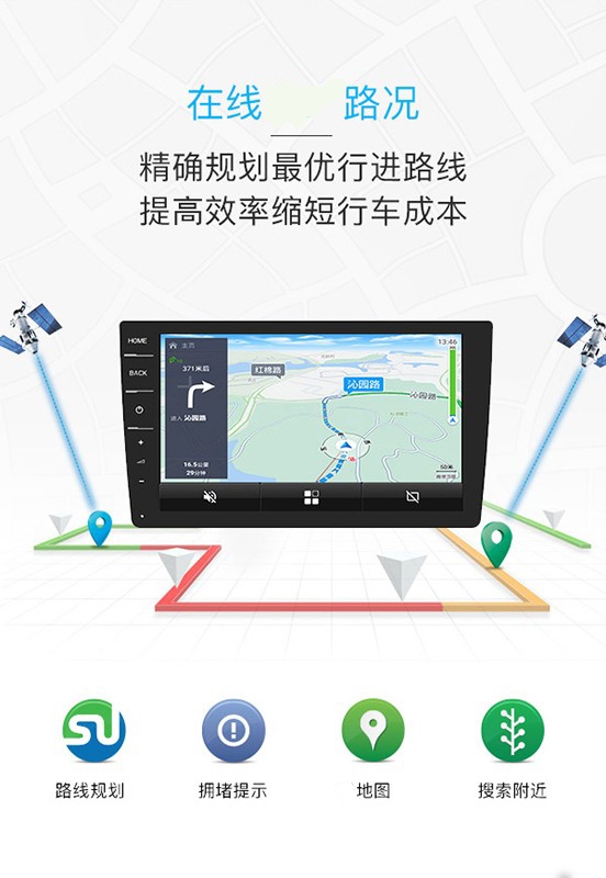 深度定製智能安卓車機係統,扁平化UI設計,清晰易懂,操作方便