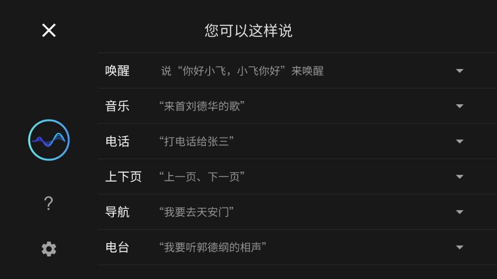 點擊對話框“?”按鈕,可查看車機部分喚醒詞。