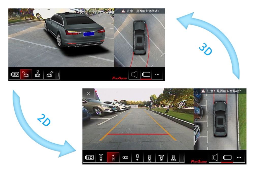 ·開機起步360°3D視圖全景環繞一周,掃清車周盲區,安全行車;