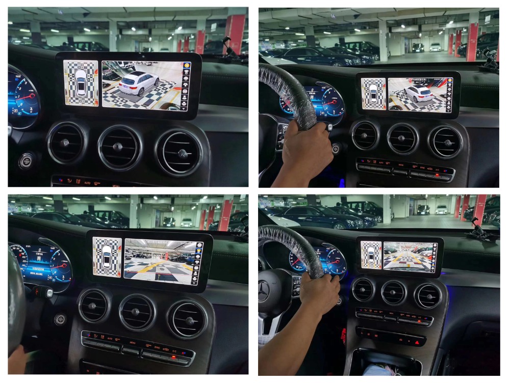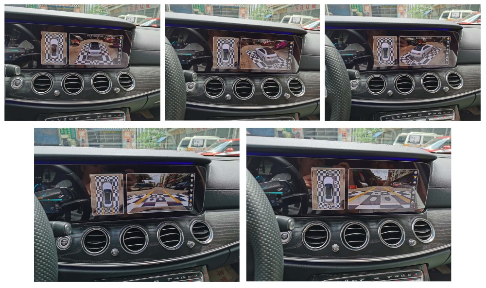 “因(yin)為(wei)拚(pin)接(jie)的(de)好(hao)壞(huai)直(zhi)接(jie)影(ying)響(xiang)產(chan)品(pin)的(de)使(shi)用(yong),所(suo)以(yi)師(shi)傅(fu)在(zai)拚(pin)接(jie)時(shi)我(wo)就(jiu)在(zai)旁(pang)邊(bian)看(kan)著(zhe),不(bu)過(guo)最(zui)後(hou)出(chu)來(lai)的(de)成(cheng)品(pin)很(hen)好(hao)。畫(hua)麵(mian)很(hen)規(gui)整(zheng),實(shi)景(jing)還(hai)原(yuan)的(de)不(bu)錯(cuo),通(tong)過(guo)中(zhong)控(kong)看(kan)周(zhou)圍(wei)和(he)我(wo)在(zai)外(wai)麵(mian)實(shi)地(di)看(kan),環(huan)境(jing)和(he)細(xi)節(jie)都(dou)八(ba)九(jiu)不(bu)離(li)十(shi),這(zhe)在(zai)開(kai)車(che)時(shi)就(jiu)很(hen)受(shou)用(yong)了(le)。平(ping)常(chang)就(jiu)算(suan)左(zuo)顧(gu)右(you)盼(pan),副(fu)駕(jia)駛(shi)那(na)邊(bian)右(you)後(hou)下(xia)方(fang)的(de)情(qing)況(kuang)也(ye)是(shi)很(hen)難(nan)看(kan)清(qing),裝(zhuang)了(le)飛(fei)歌(ge)全(quan)景(jing),這(zhe)看(kan)起(qi)來(lai)就(jiu)很(hen)方(fang)便(bian)了(le)。”