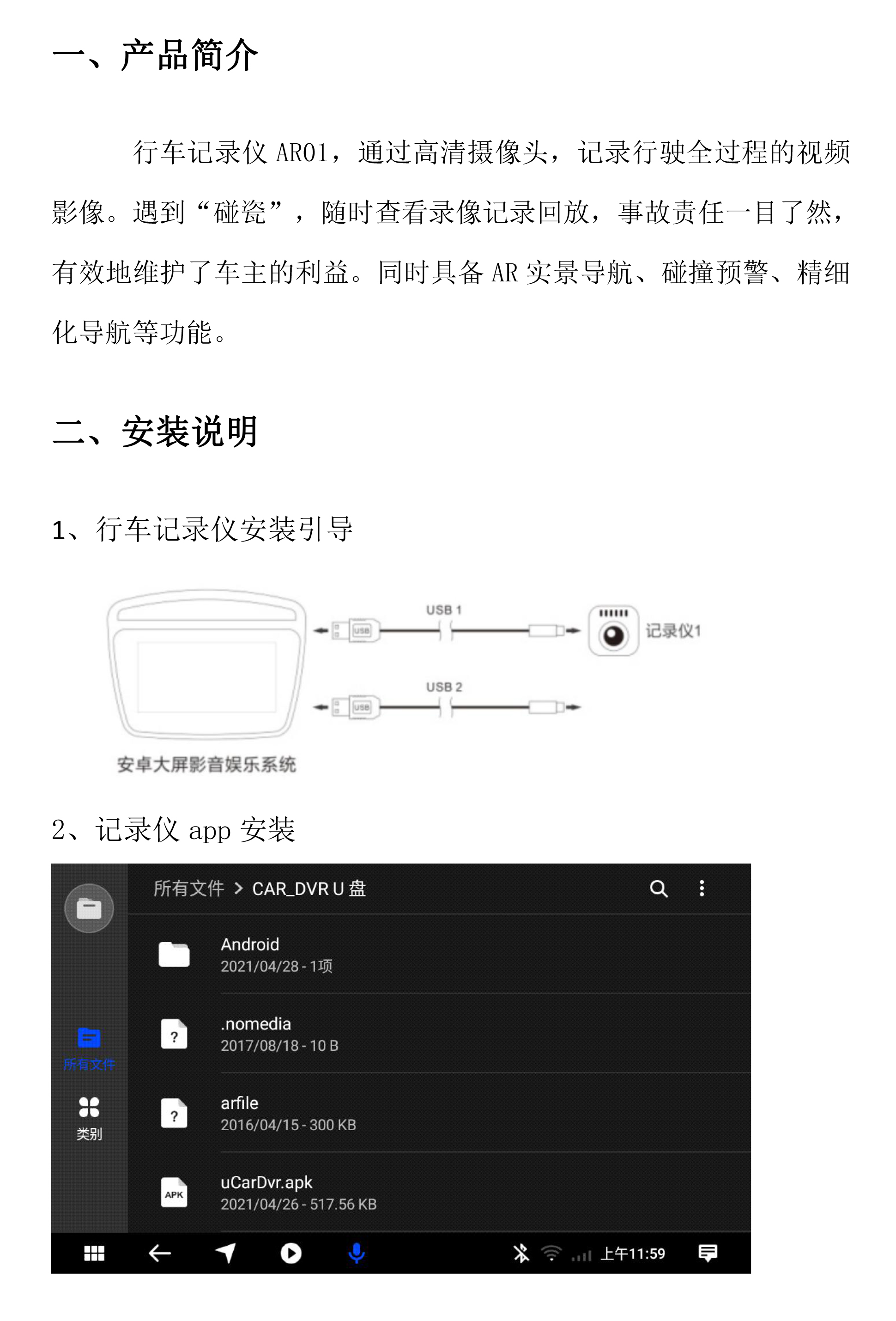 Flyaudio行車記錄儀AR01(USB)使用說明書