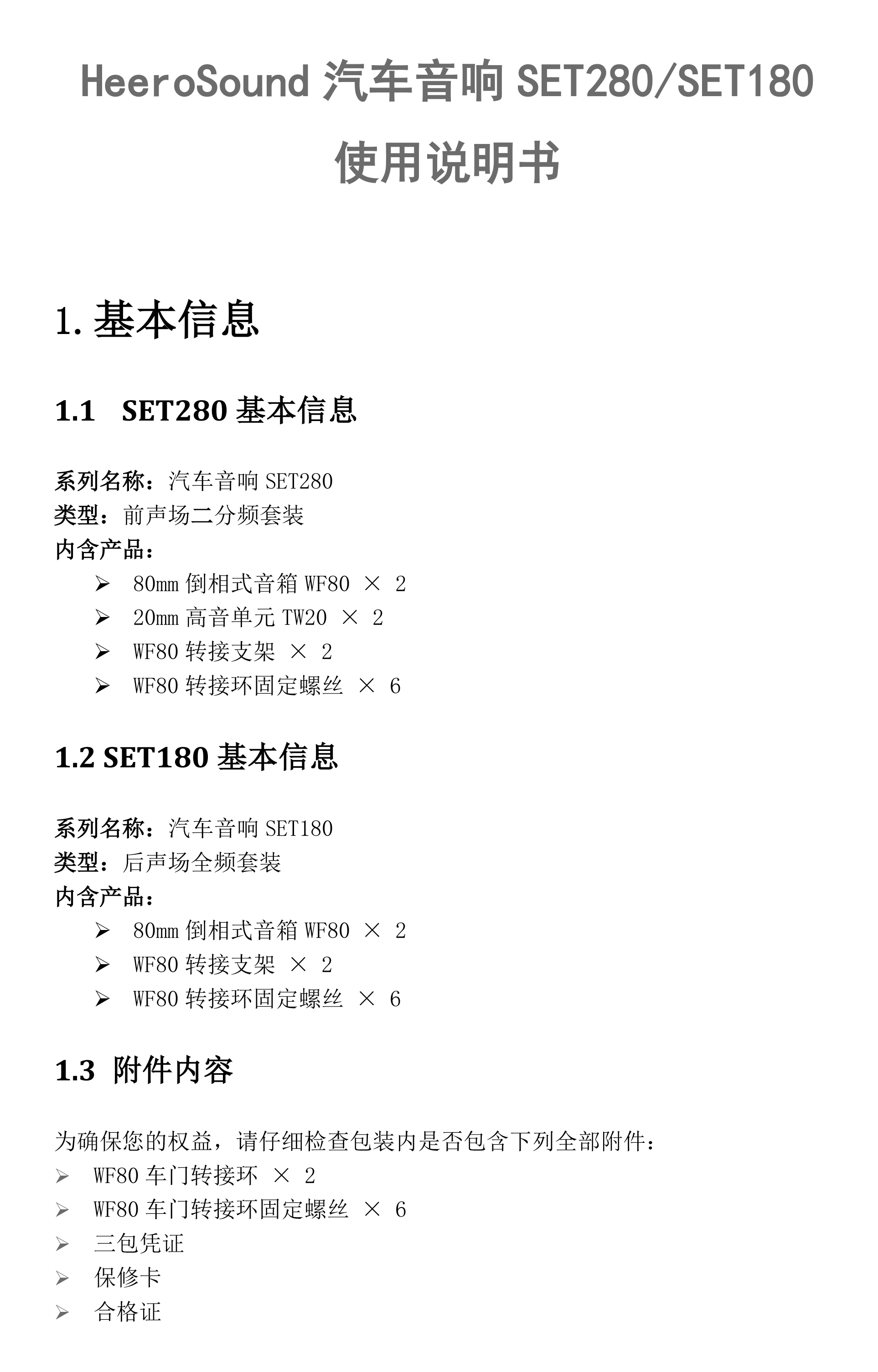 HeeroSound汽車音響SET280/SET180使用說明書