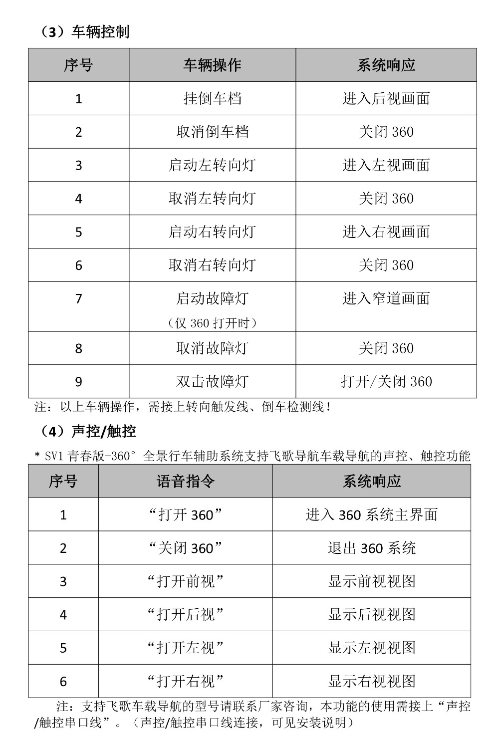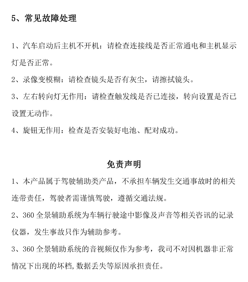 Flyaudio 360°全景行車輔助係統——SV1 青春版安裝說明書
