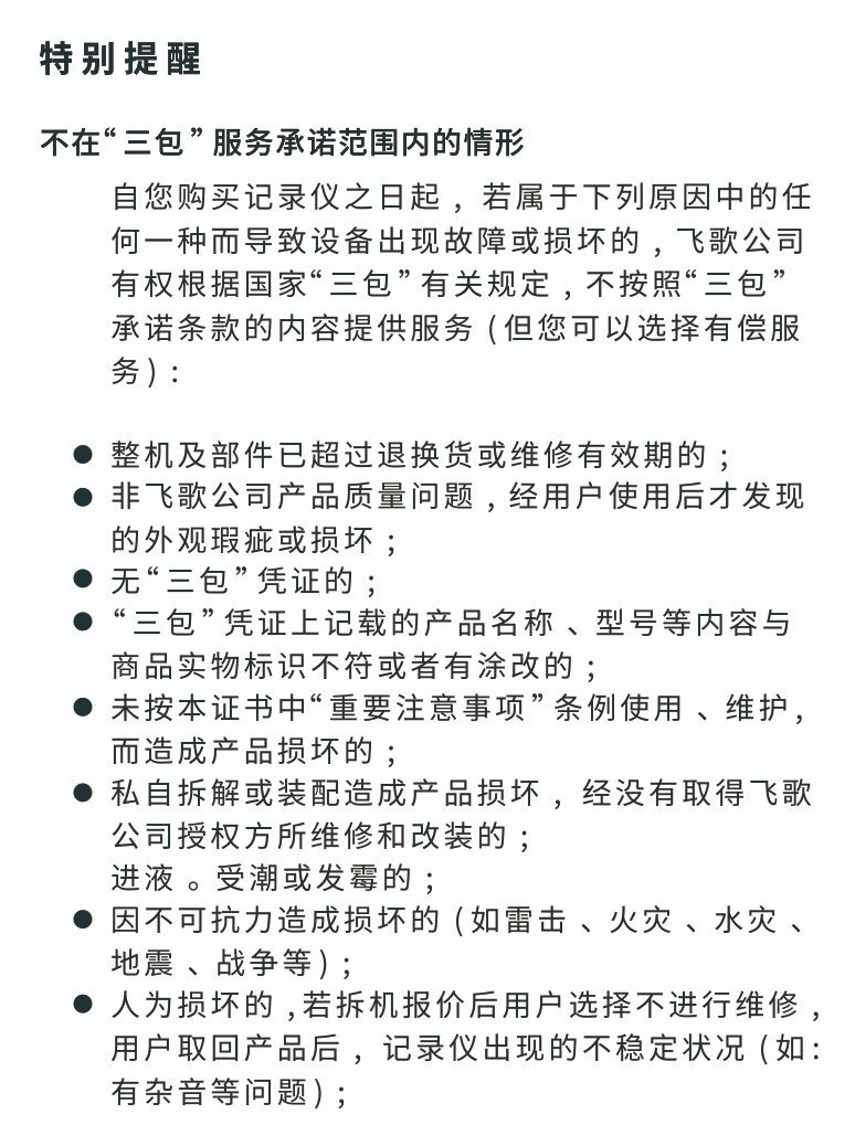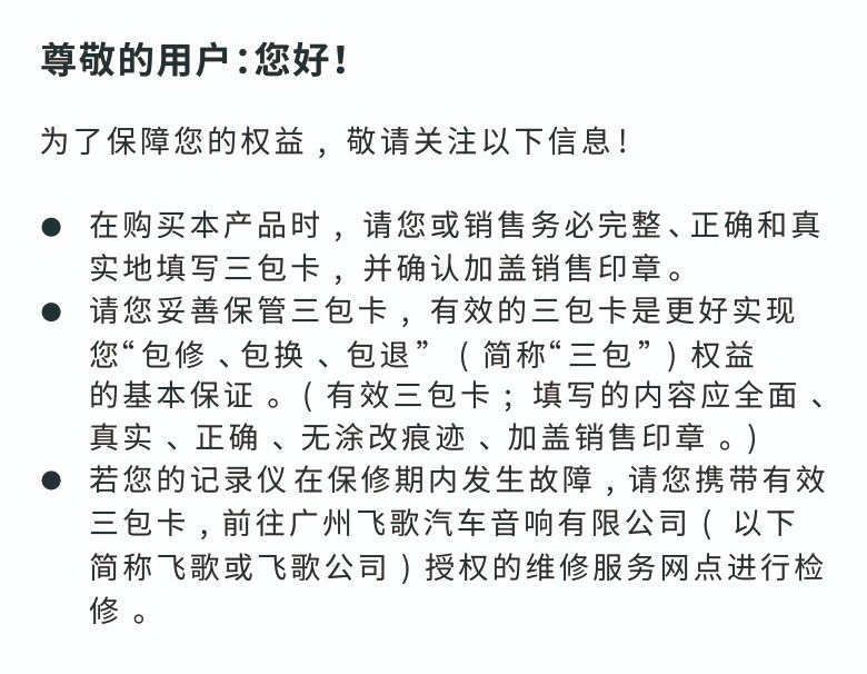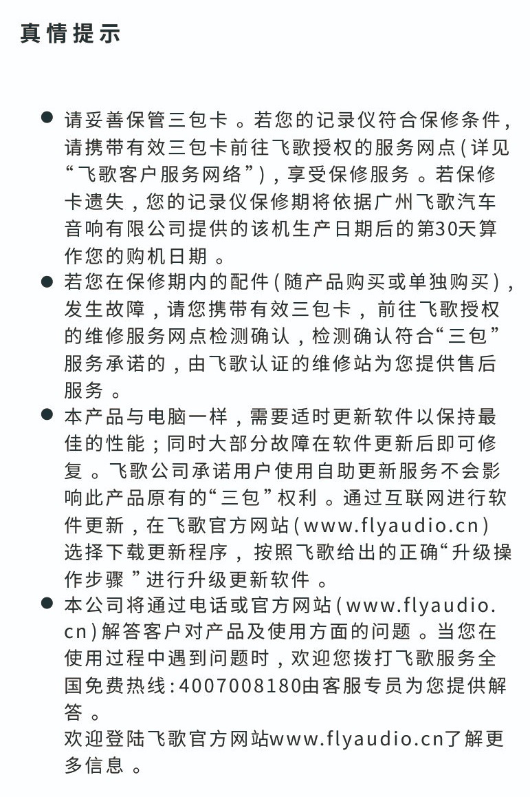 Flyaudio AR行車記錄儀三包說明