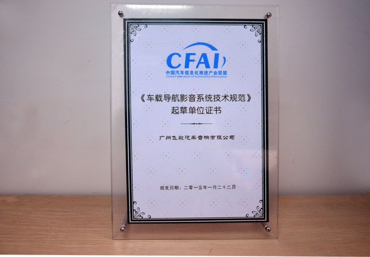 《車載導航影音係統技術規範》由中國汽車信息化推進產業聯盟(CFAI)組(zu)織(zhi)定(ding)製(zhi)。此(ci)次(ci)製(zhi)定(ding)行(xing)業(ye)標(biao)準(zhun),由(you)業(ye)內(nei)多(duo)家(jia)車(che)載(zai)導(dao)航(hang)廠(chang)家(jia)參(can)與(yu)起(qi)草(cao),內(nei)容(rong)權(quan)威(wei)。對(dui)於(yu)提(ti)升(sheng)行(xing)業(ye)內(nei)的(de)產(chan)品(pin)品(pin)質(zhi),為(wei)消(xiao)費(fei)者(zhe)奉(feng)獻(xian)最(zui)滿(man)意(yi)的(de)產(chan)品(pin),意(yi)義(yi)重(zhong)大(da)。