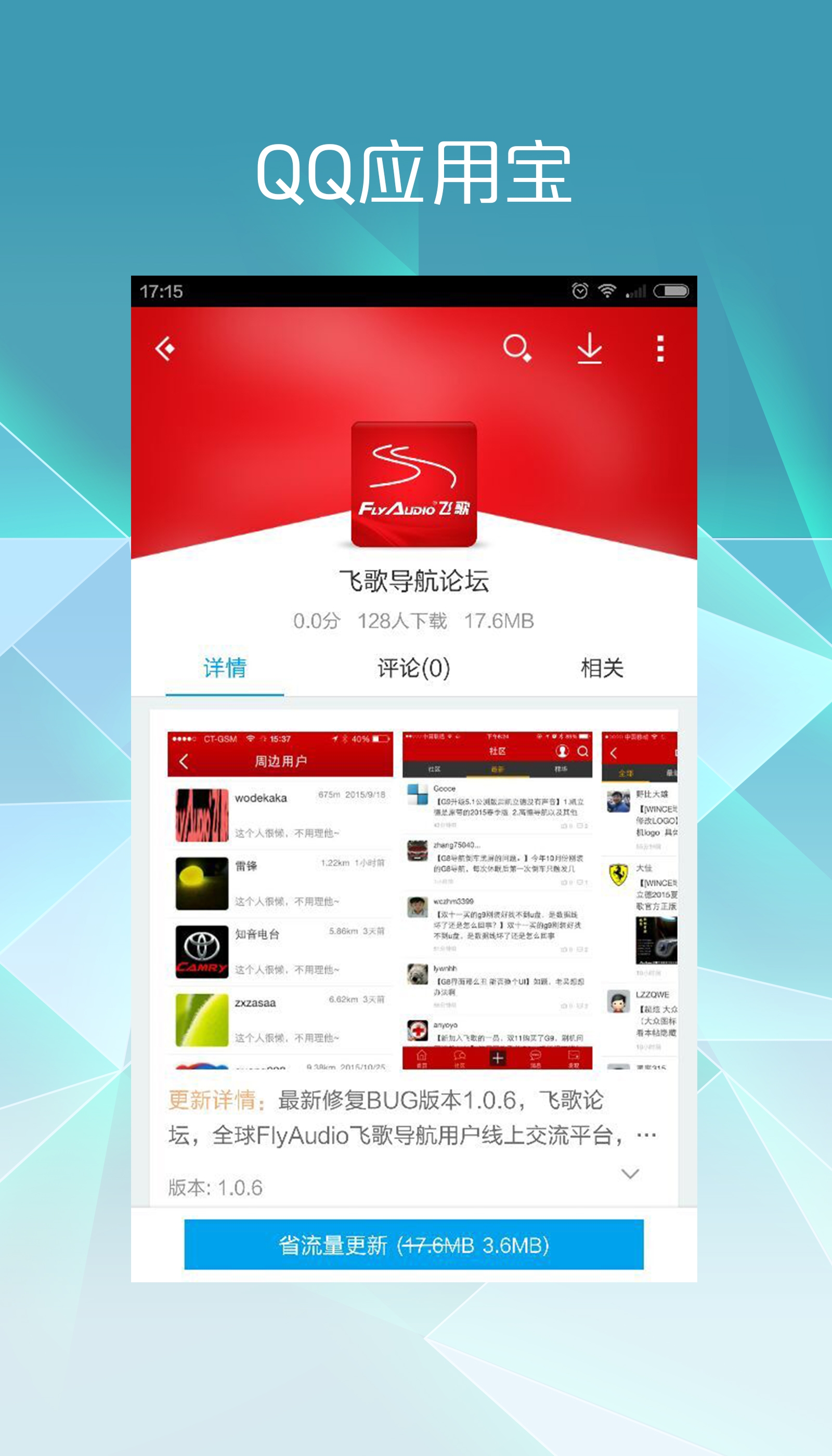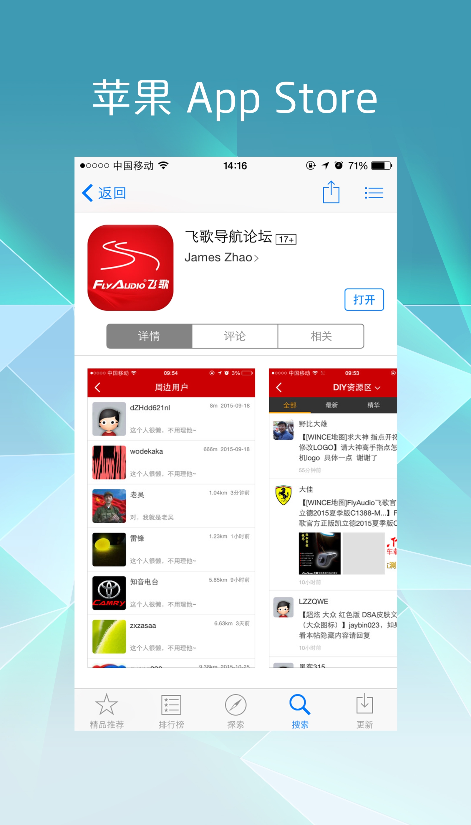 2015-12-29飛歌導航論壇App正式上線蘋果應用商店App Store,同時被各大安卓市場收錄。